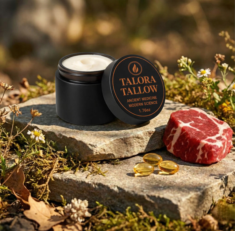 Talora Tallow is a nutrient-dense anti-aging moisturizer crafted with Wagyu beef tallow and clinically studied ingredients. It combines ancestral skincare wisdom with modern science to deeply hydrate, repair the skin barrier, and visibly reduce signs of aging.